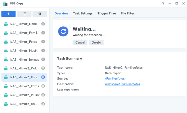 - Es ist nicht möglich, alle Grundverzeichnisse der NAS in einem einzigen "Task" zu sichern